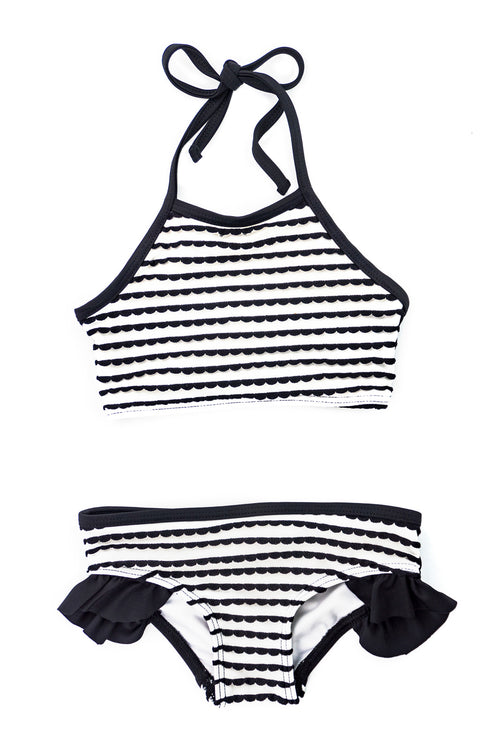 Crop bikini - Black & White Ruffle