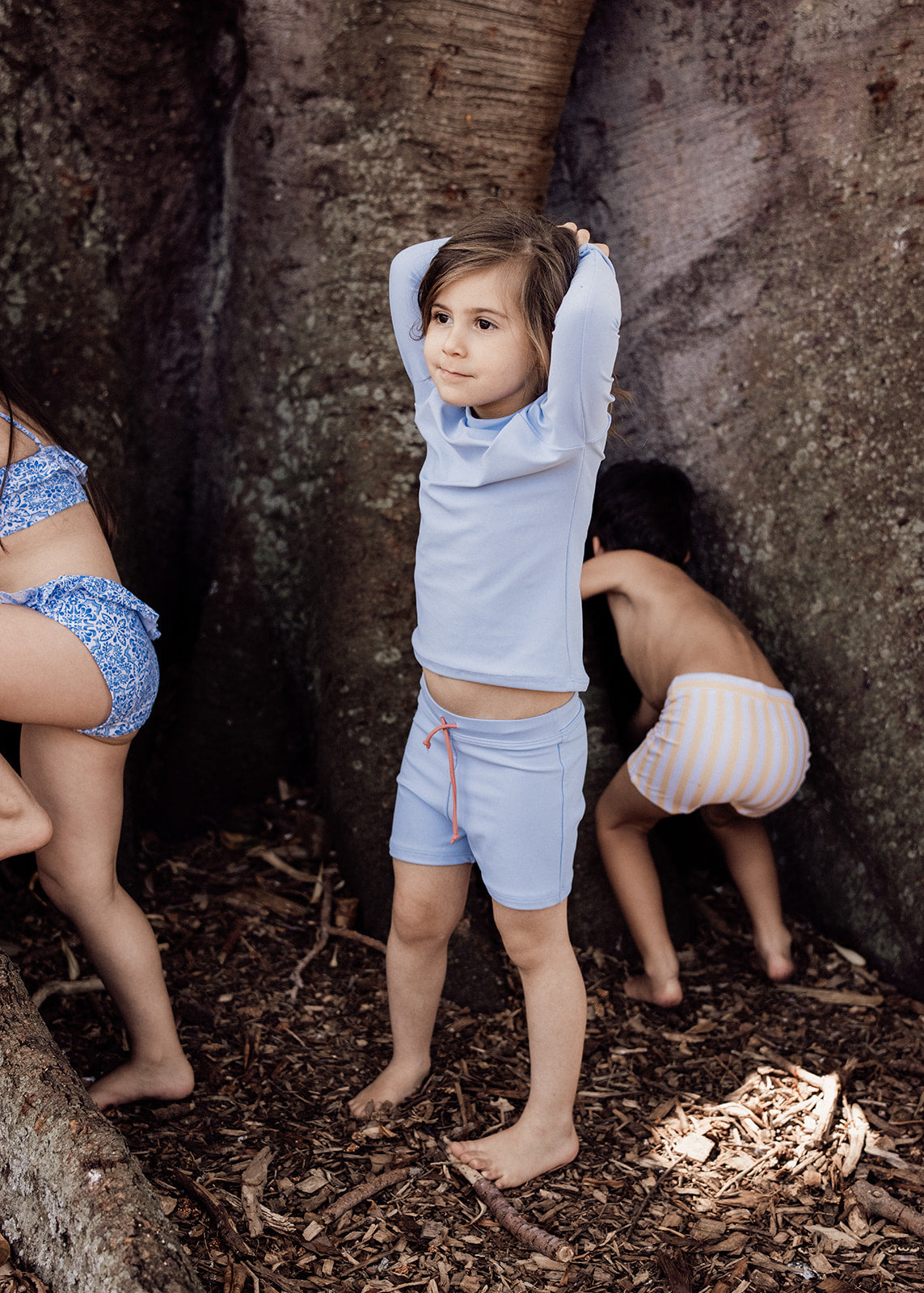 Perfect for long days spent at the beach or lounging poolside, this unisex rashie is unlined for a lighter feel. Raglan sleeves allow for plenty of movement and a closer fit. The dipped back hem provides added coverage. Made in UPF 50+ sun-protective and sustainable, high quality lycra fabric to keep minis safe all day long.