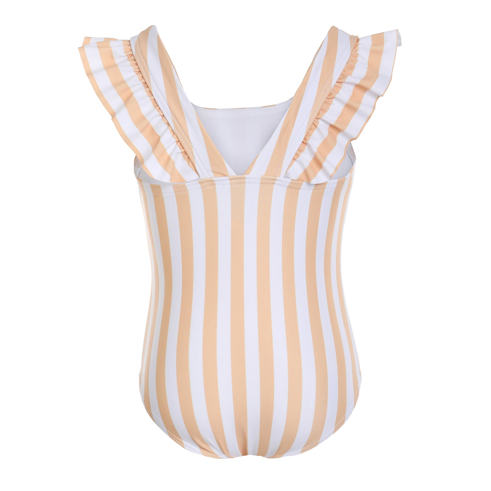 Perfect for long days spent at the beach or lounging poolside, this one-piece with beautiful ruffle detail is fully lined and is made in UPF 50+ sun-protective and sustainable, high quality nylon/lycra fabric to keep her safe all day long.